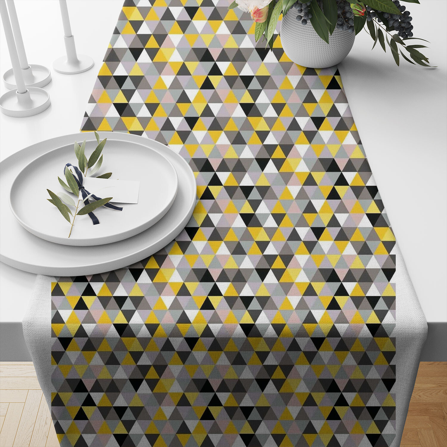 Popis Bavlnená dekoračná látka vzor Žlté trojuholníky 2 cm, metráž 160 cm