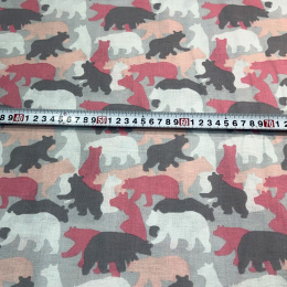 Bavlnená látka 123 , vzor medveď, farba šedá, metráž 160 cm