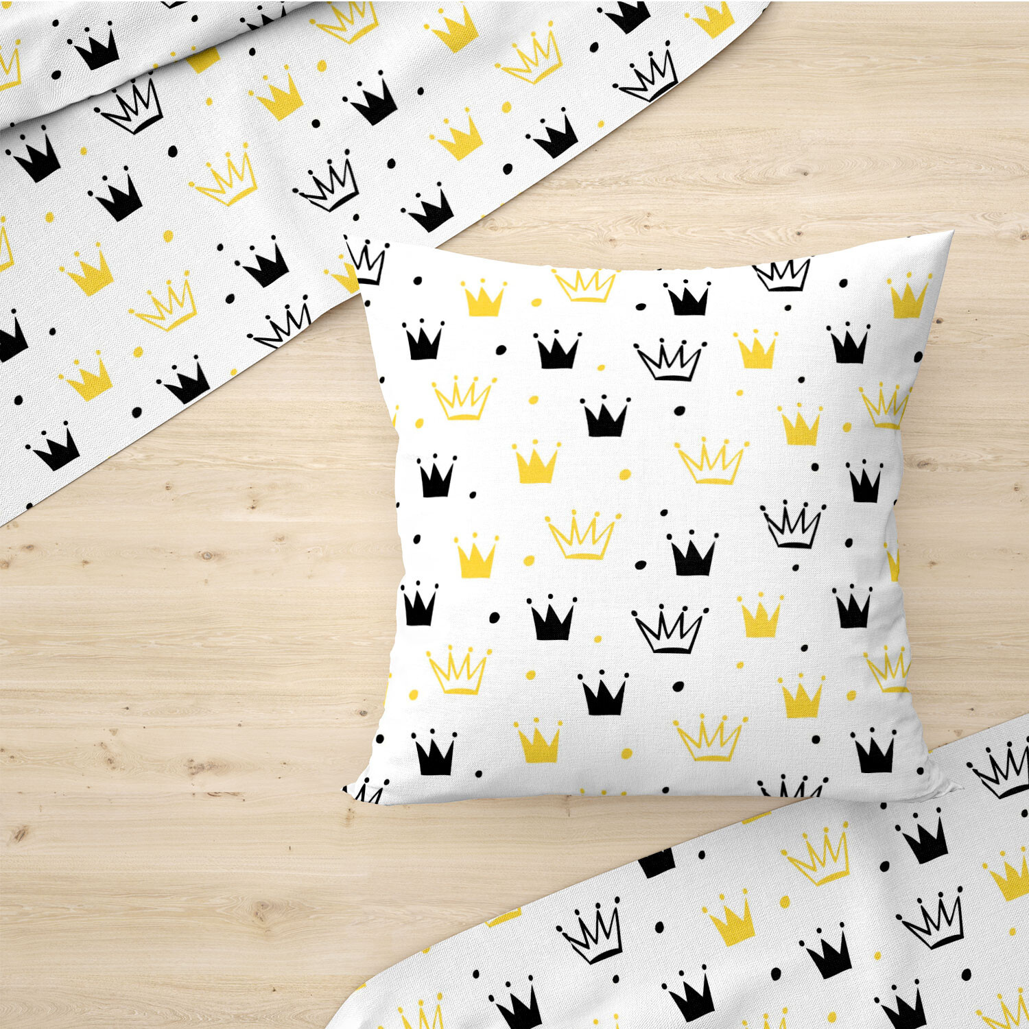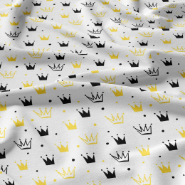 Bavlnená látka 2, vzor korunky žlté multi na bielom podklade, metráž 160 cm