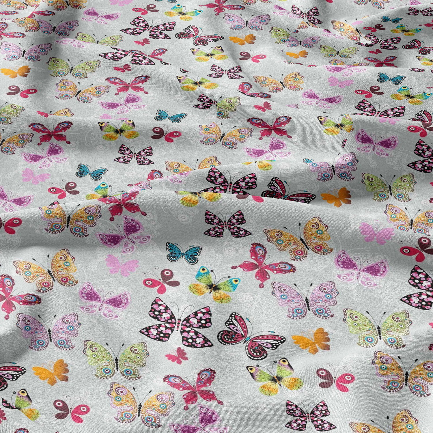 Bavlnená látka 22, vzor motýlikovia new na šedom podklade, metráž 160 cm