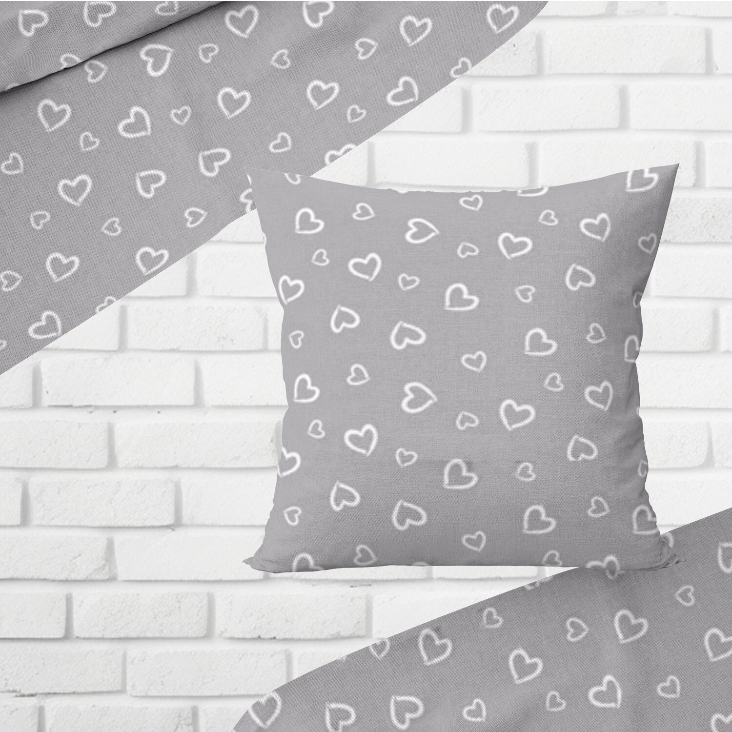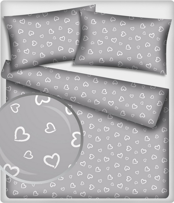 Popis Bavlnená látka 373, vzor srdiečka, šedý podklad, metráž 160 cm