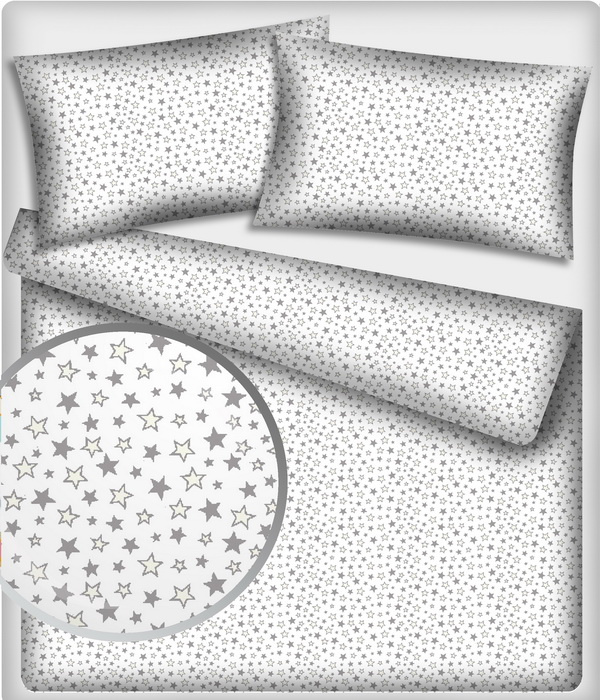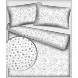 Popis Bavlnená látka 392, vzor malé šedé hviezdy na bielom podklade, metráž 160 cm