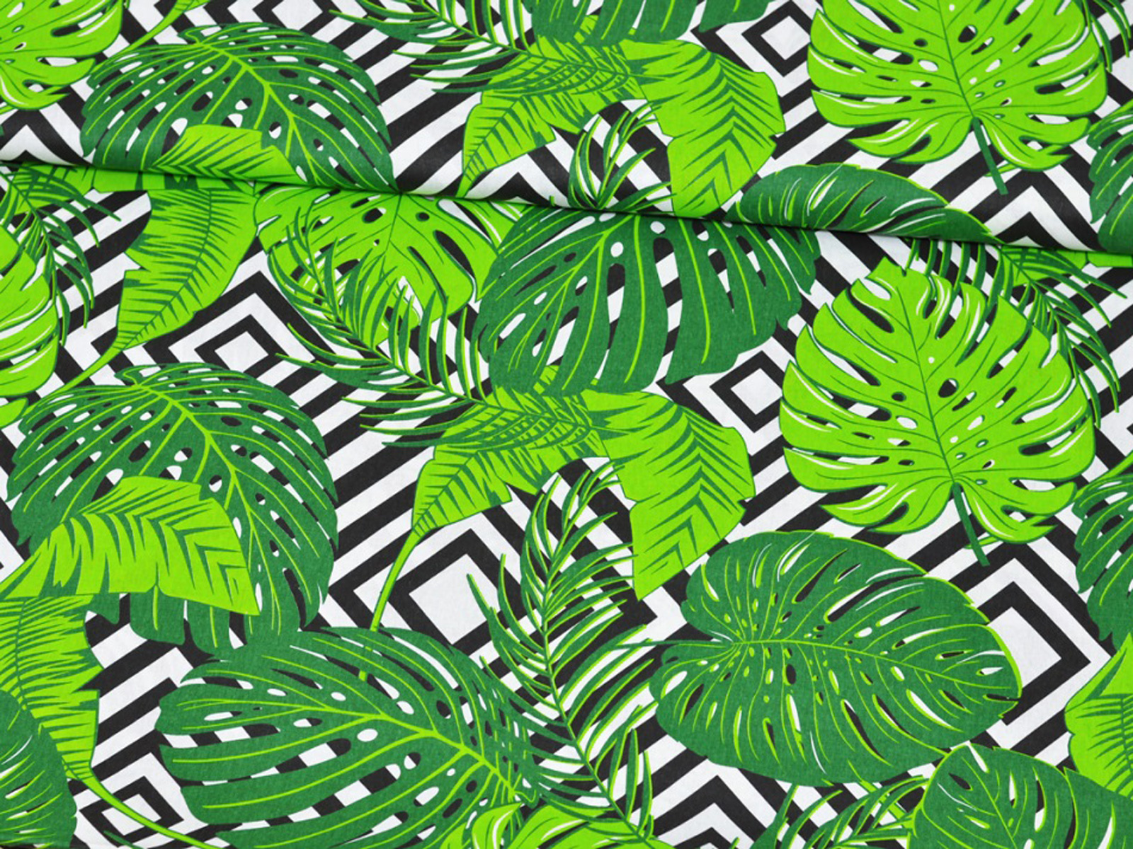 Popis Bavlnená látka 481, vzor zelené listy, metráž 160 cm
