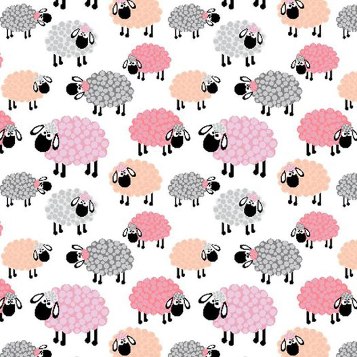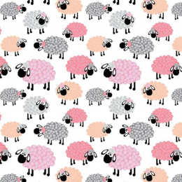 Bavlnená látka 514, vzor ružové ovečky na bielom podklade, metráž 160 cm