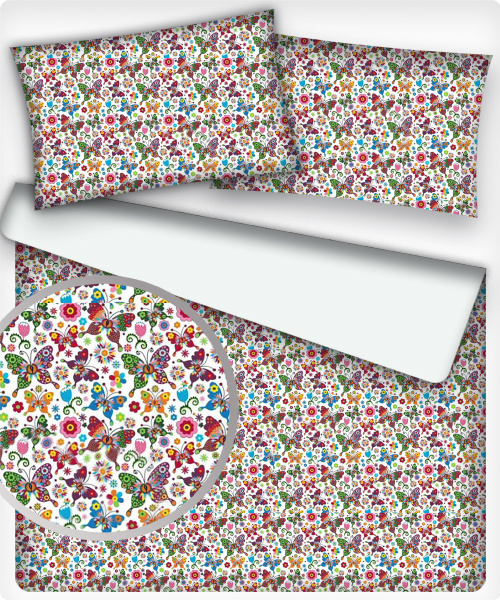 Popis  Bavlnená látka 566, vzor motýlikovia leto, farba biela, metráž 160 cm