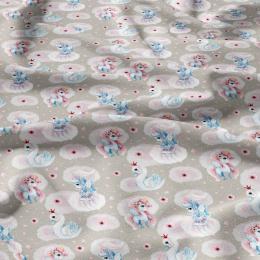 Bavlnená látka, detský vzor jemný pohľad na šedom podklade, metráž 160 cm