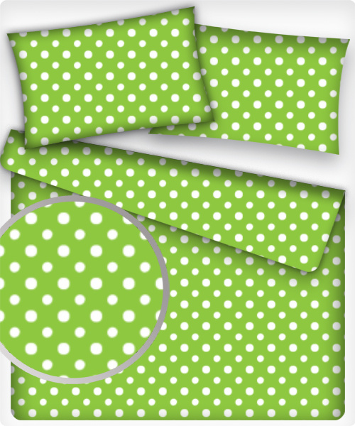 Popis Bavlnená látka, vzor 10 mm biela bodka na zelenom podklade, metráž 160 cm