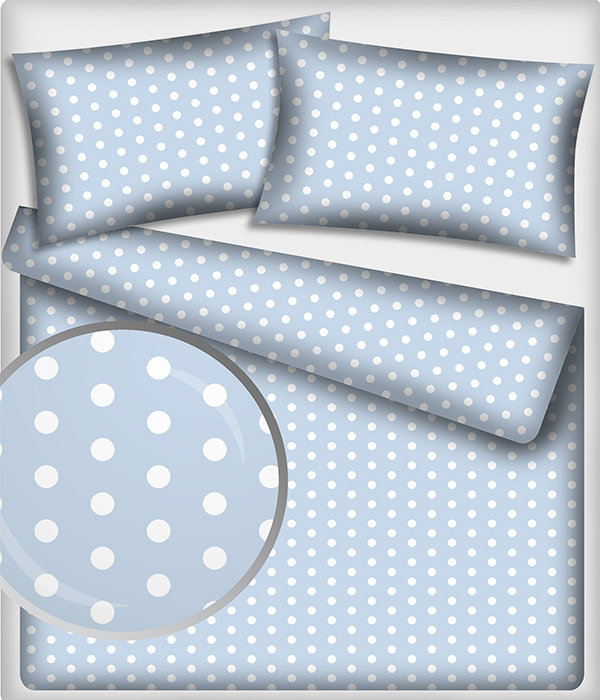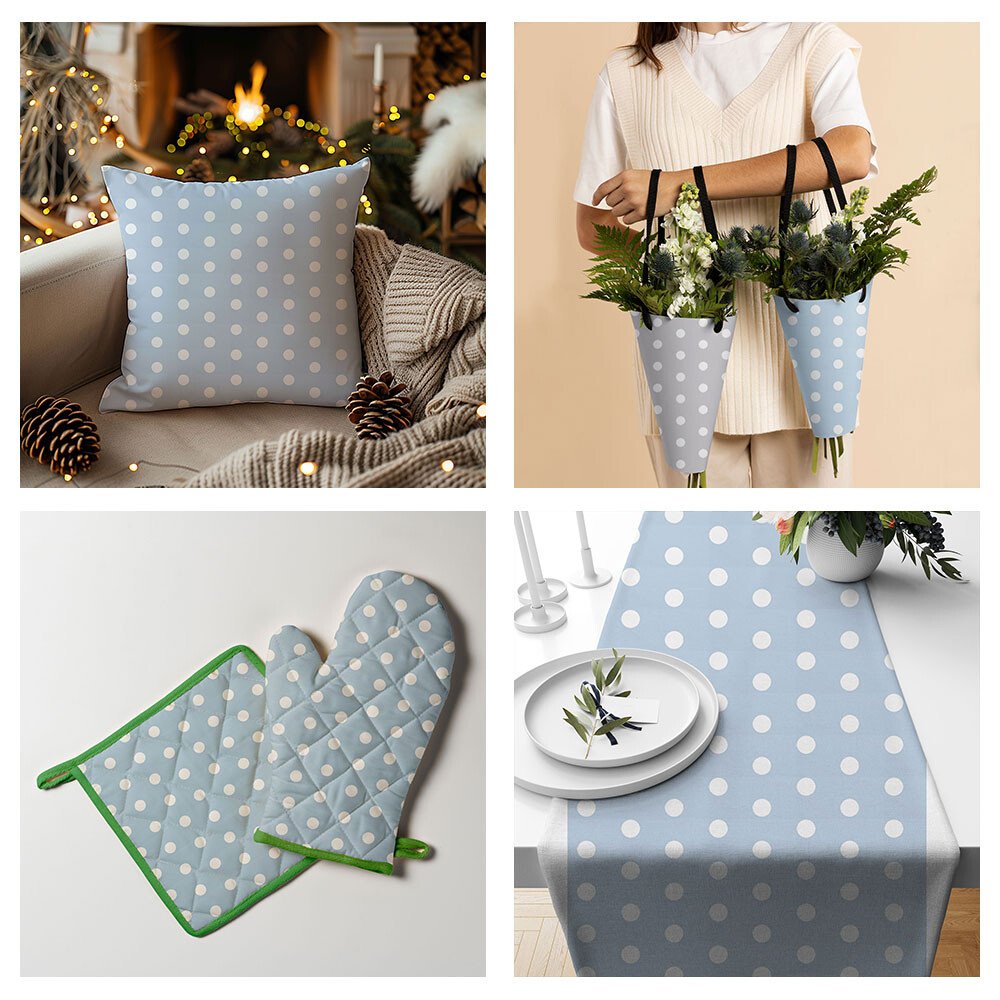 Popis Bavlnená látka, vzor 22 mm biela bodka na modrom podklade, metráž 160 cm