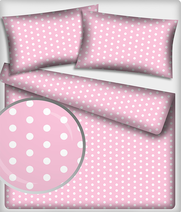 Popis Bavlnená látka, vzor 22 mm biela bodka na ružovom podklade, metráž 160 cm