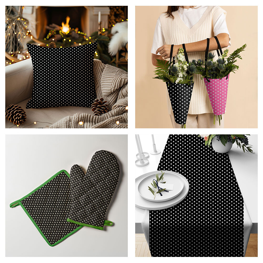 Popis Bavlnená látka, vzor 3 mm bodka černá na bielom podklade, metráž 160 cm
