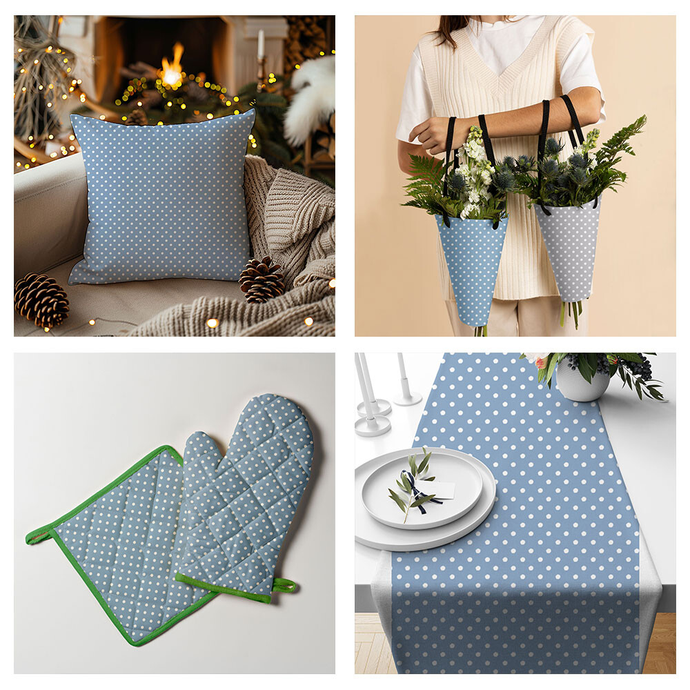 Popis Bavlnená látka, vzor 4 mm bodka na modrom podklade, metráž 160 cm