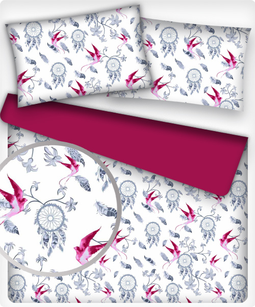 Popis Bavlnená látka vzor amarantový lovec snov, biely podklad, metráž 160 cm