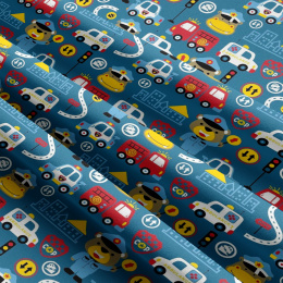 Bavlnená látka vzor autá sos, modrý podklad, metráž 160 cm