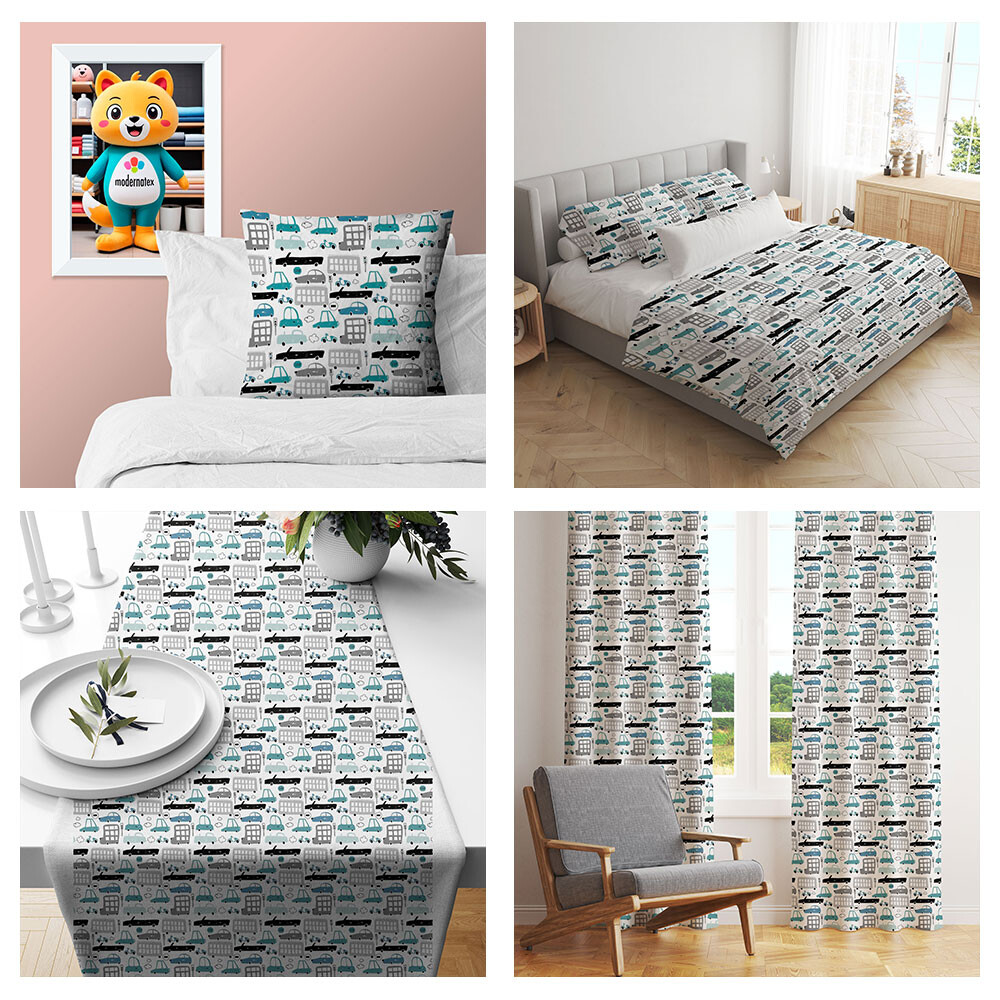 Popis Bavlnená látka vzor autíčka tyrkys modern, metráž 160 cm