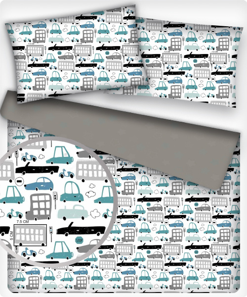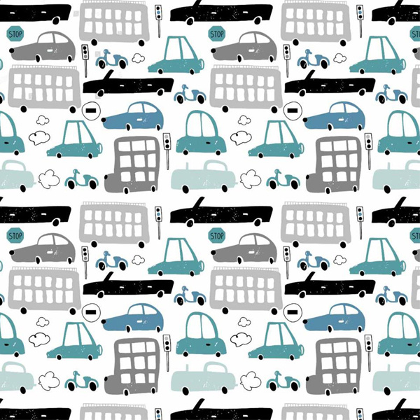 Popis Bavlnená látka vzor autíčka tyrkys modern, metráž 160 cm