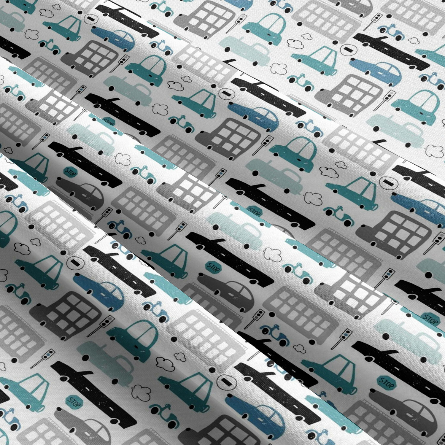 Bavlnená látka vzor autíčka tyrkys modern, metráž 160 cm