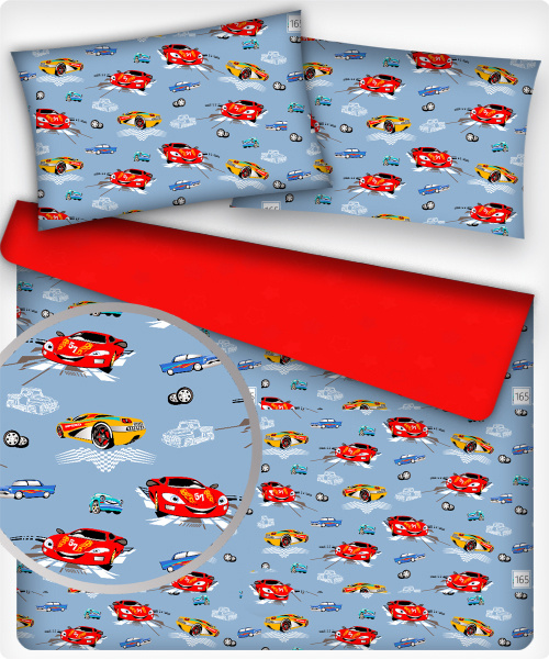 Popis Bavlnená látka vzor auto sport, modrý podklad, metráž 160 cm