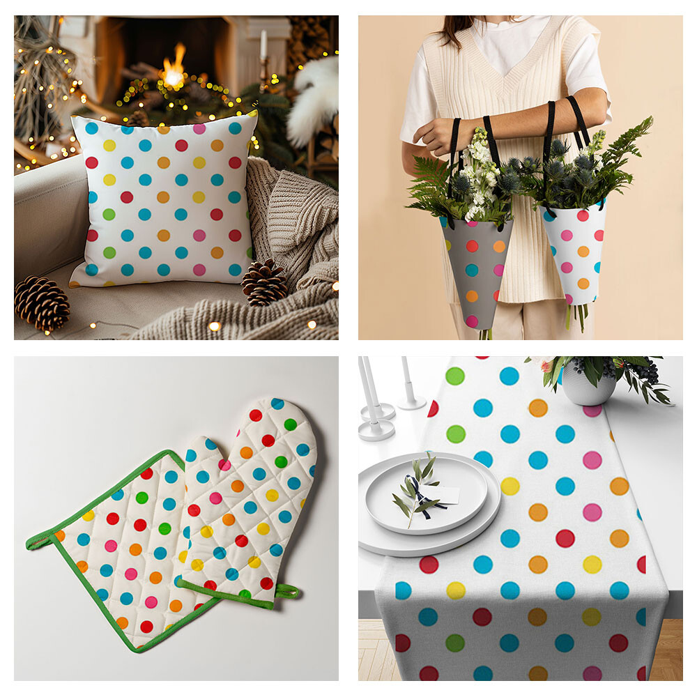 Popis Bavlnená látka vzor bodka 40 mm, farba multicolor, metráž 160 cm