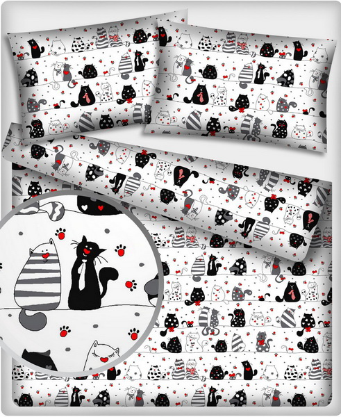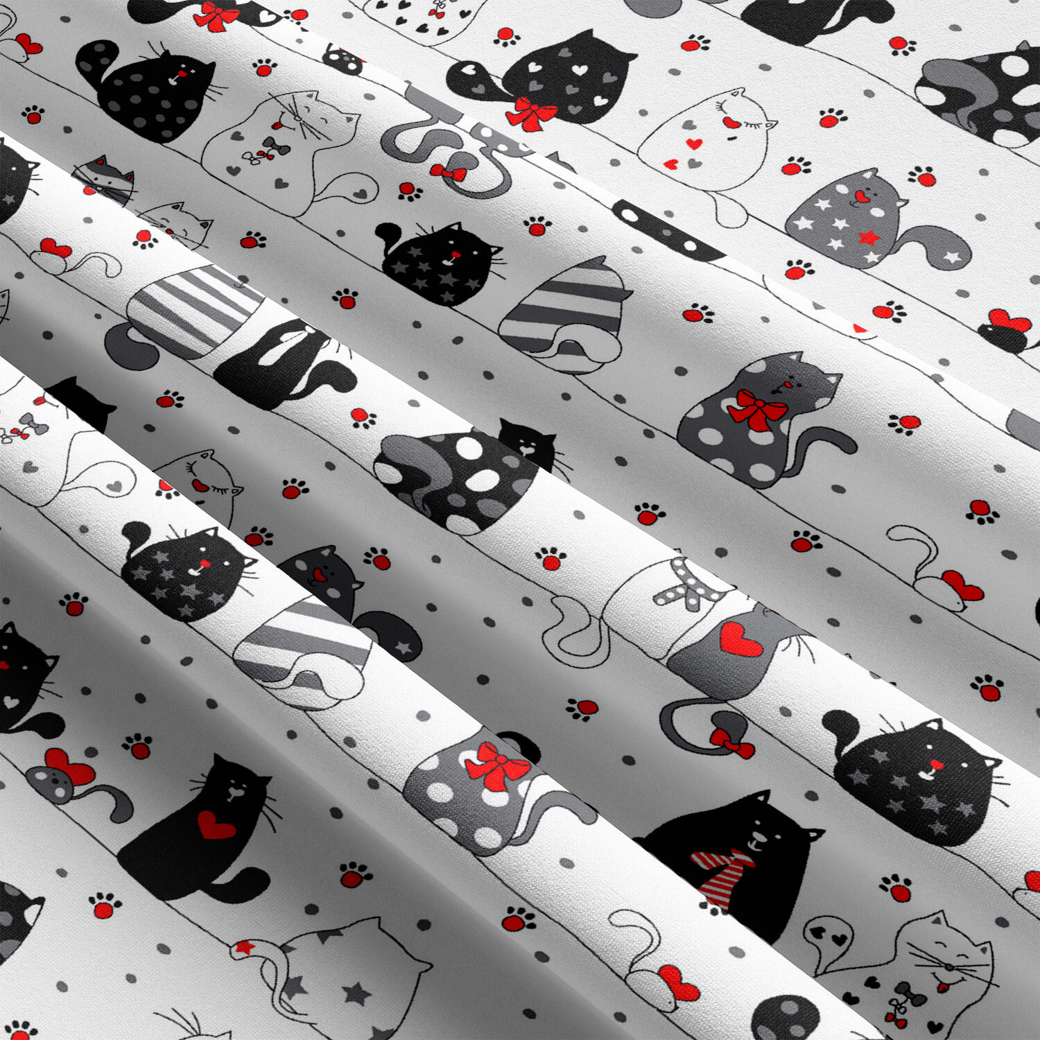 Popis Bavlnená látka vzor crazy kat na bielom podklade, metráž 160 cm