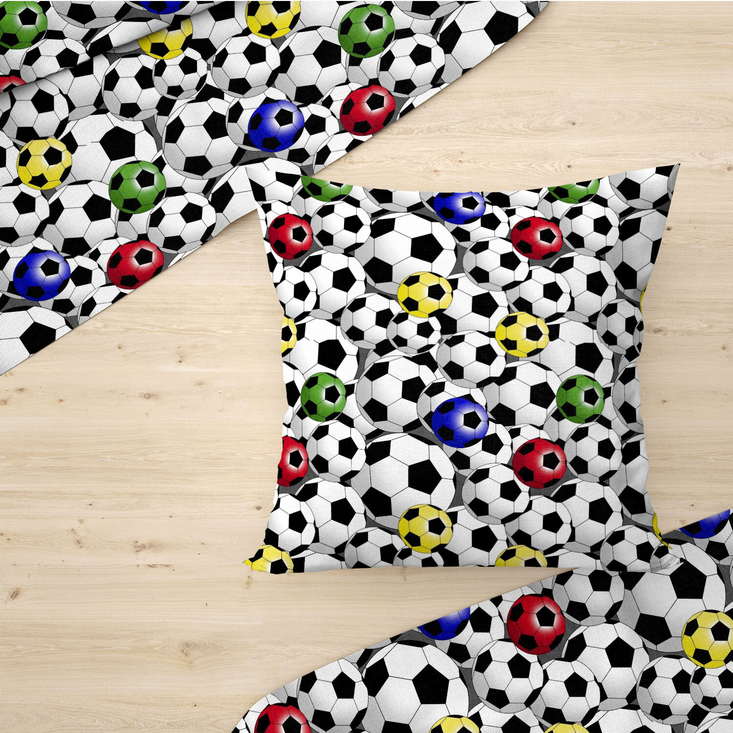 Bavlnená látka vzor football multi, farba biela, metráž 160 cm