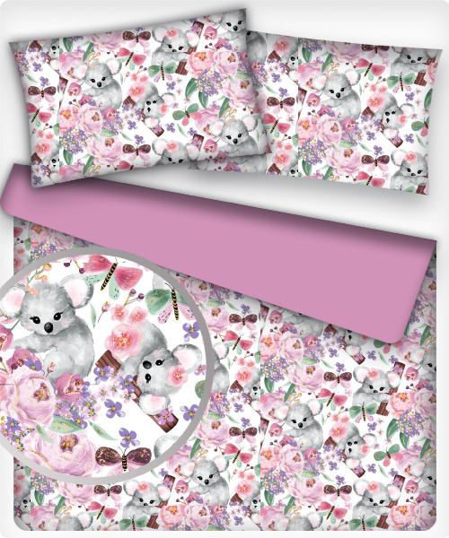 Popis  Bavlnená látka, vzor koaly na bielom podklade, metráž 160 cm