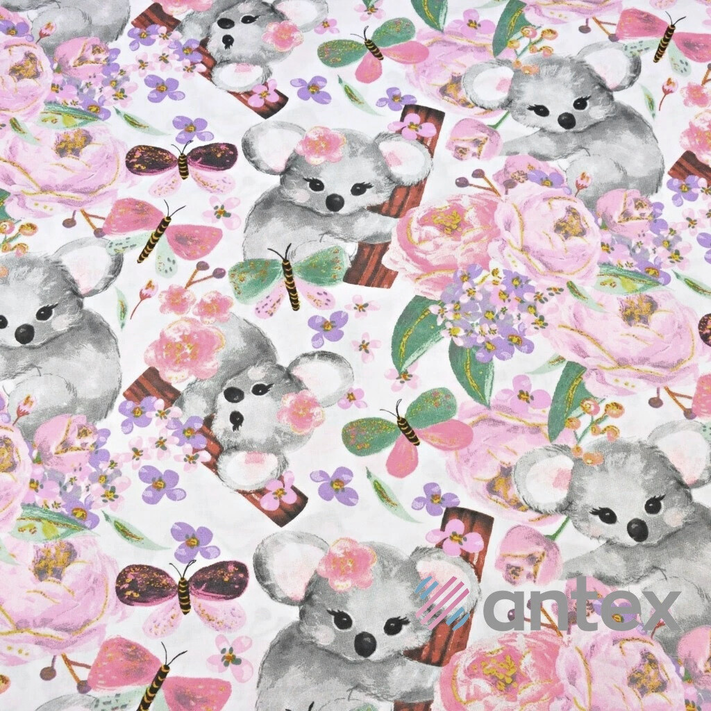 Bavlnená látka, vzor koaly na bielom podklade, metráž 160 cm