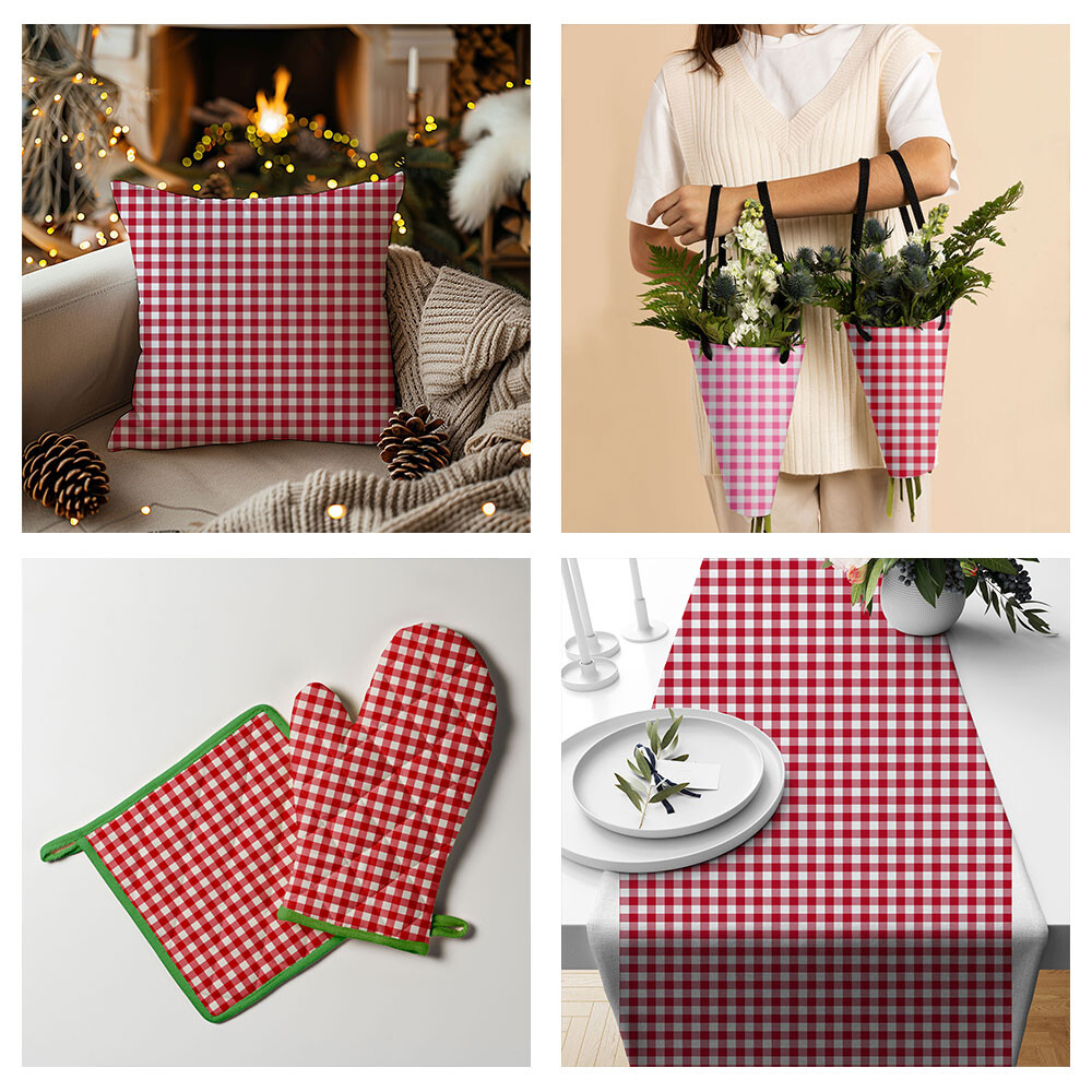 Popis Bavlnená látka, vzor kocka 130, farba červená, metráž 150 cm