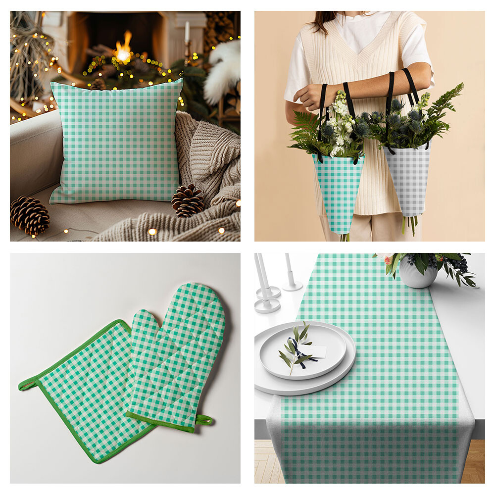 Bavlnená látka, vzor kocka 282, farba mentolová, metráž 150 cm