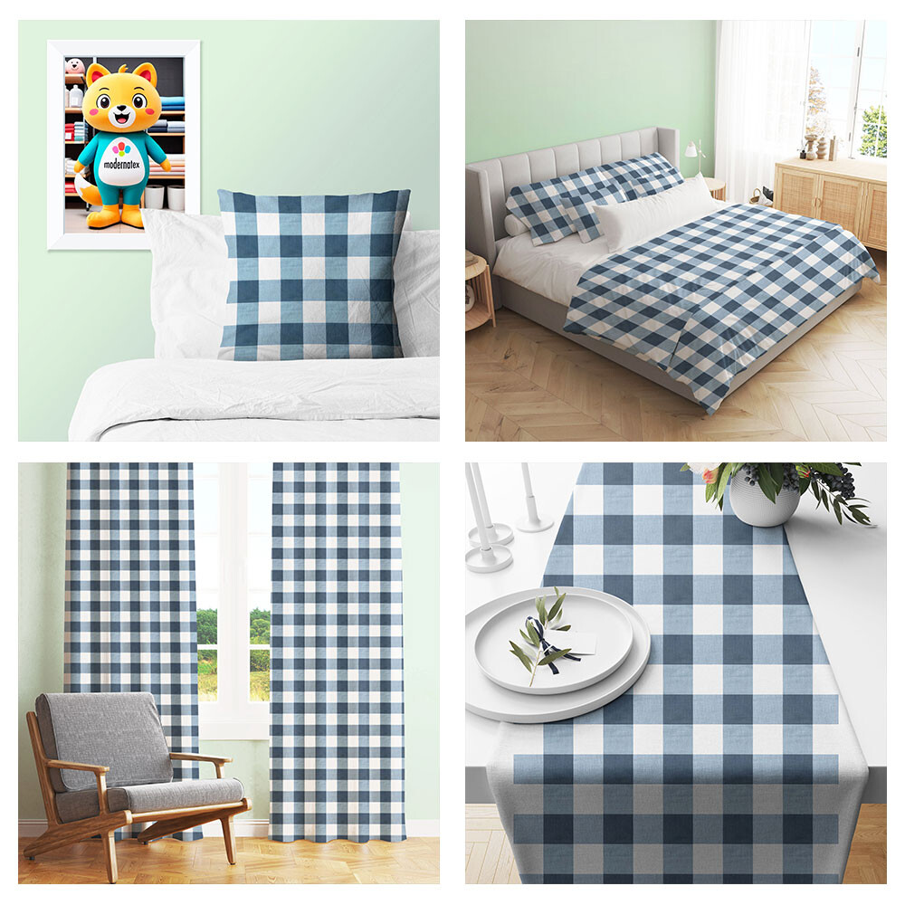 Popis Bavlnená látka, vzor kocka modrá 8 cm mix, metráž 150 cm