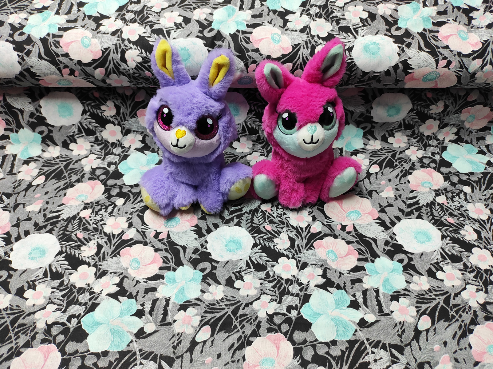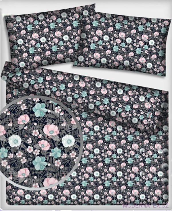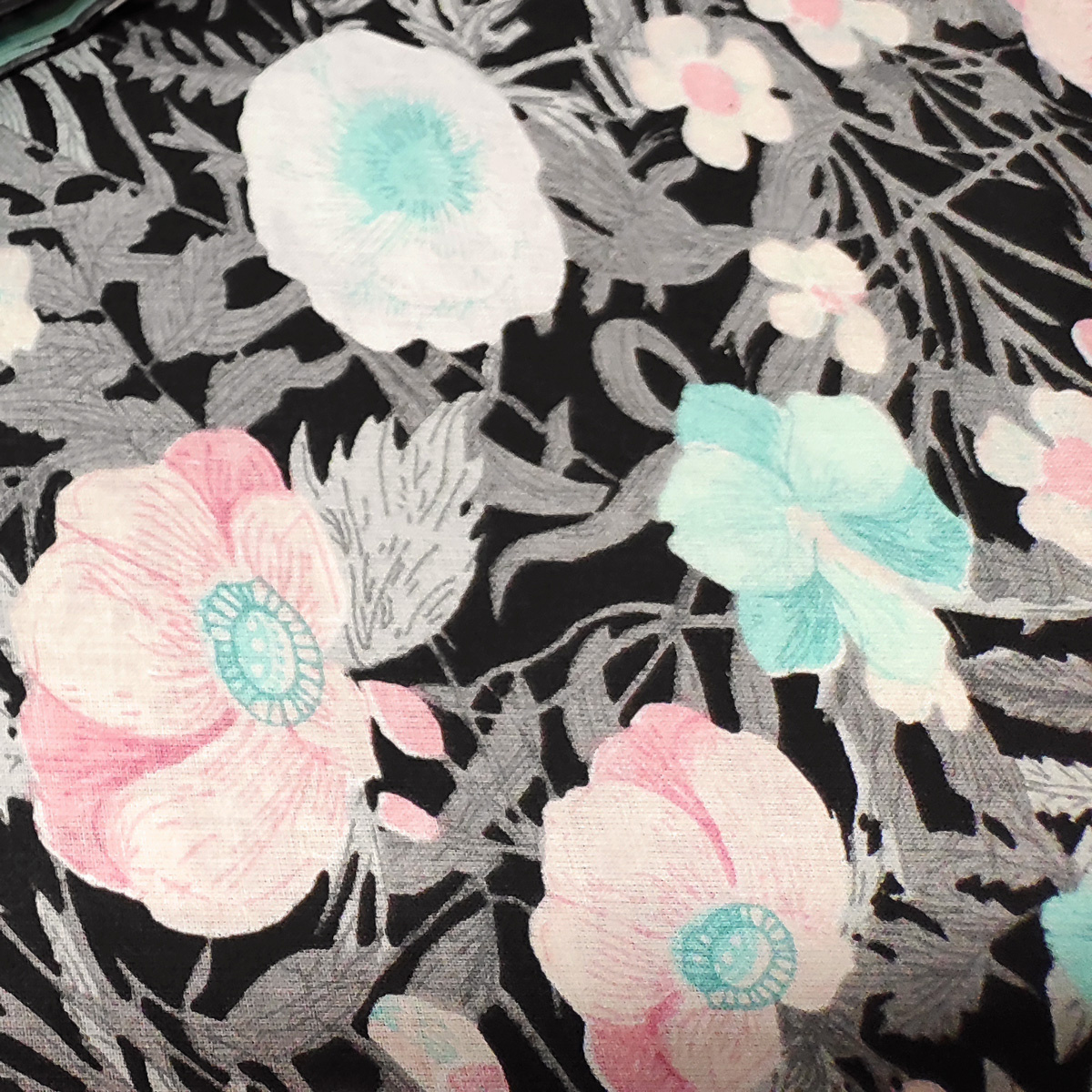 Popis Bavlnená látka vzor kvetiny na čiernom podklade, metráž 160 cm