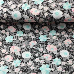 Bavlnená látka vzor kvetiny na čiernom podklade, metráž 160 cm