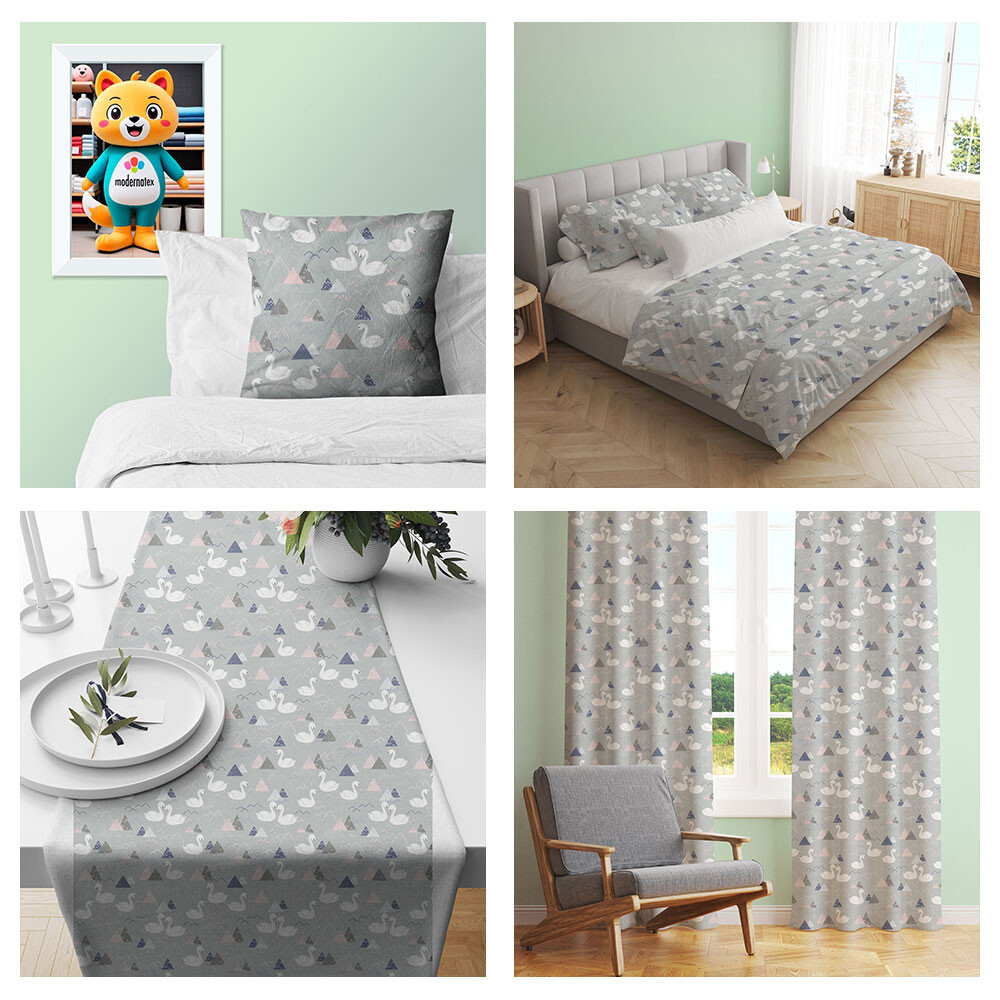 Popis Bavlnená látka vzor labute na šedom podklade, metráž 160 cm