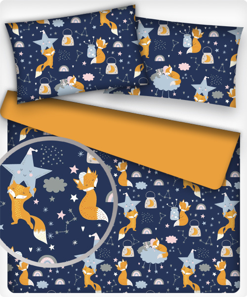 Popis Bavlnená látka vzor líšky na modrom podklade, metráž 160 cm