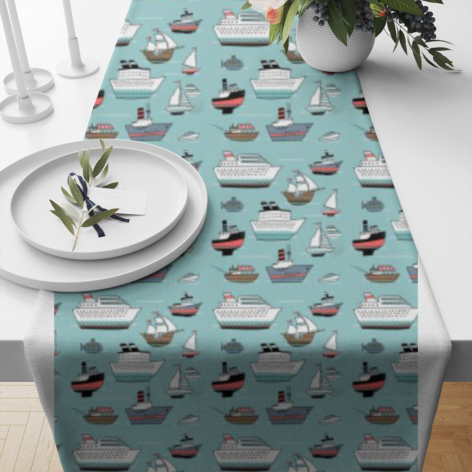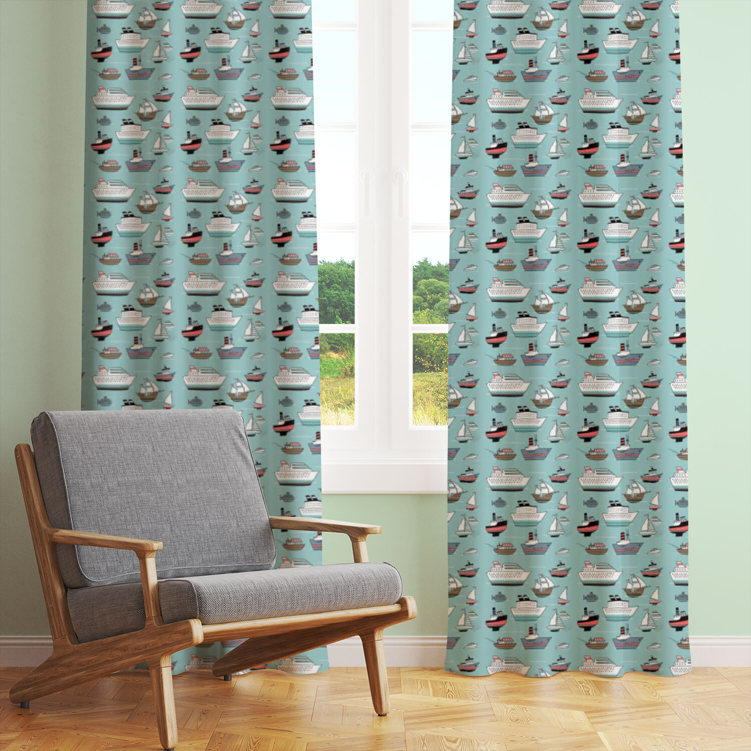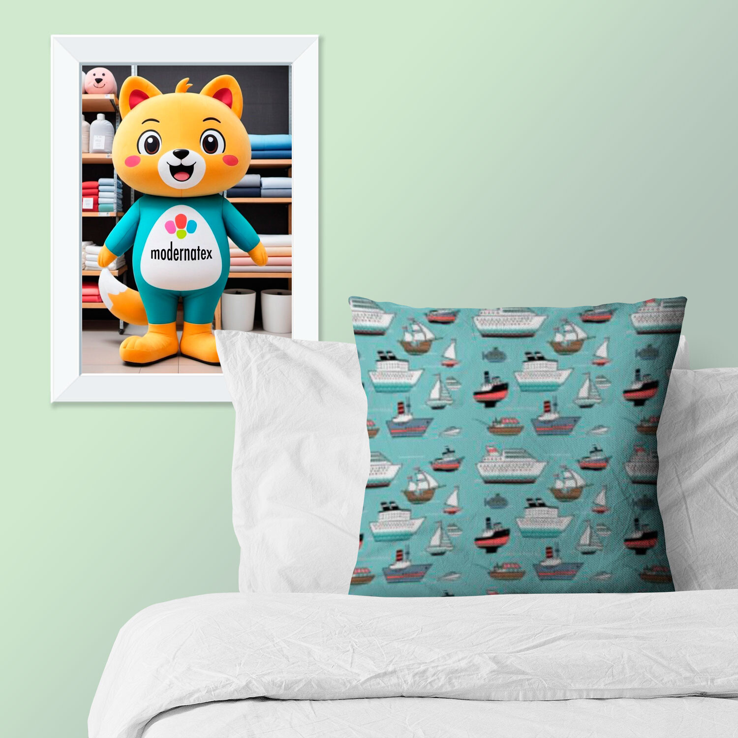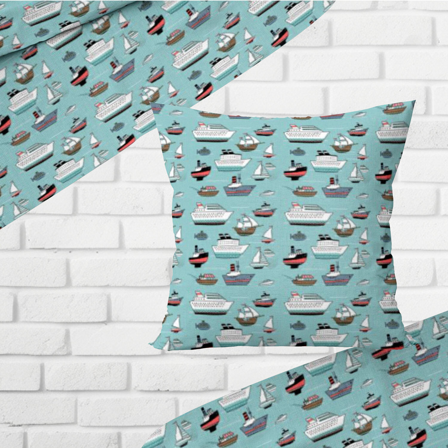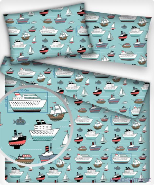 Popis Bavlnená látka vzor lode, modrý podklad, metráž 160 cm