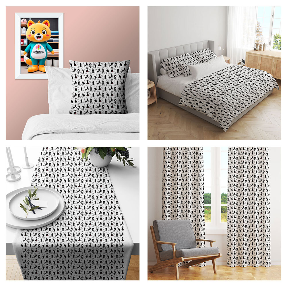 Bavlnená látka vzor mačka kleopatra na bielom podklade, metráž 160 cm
