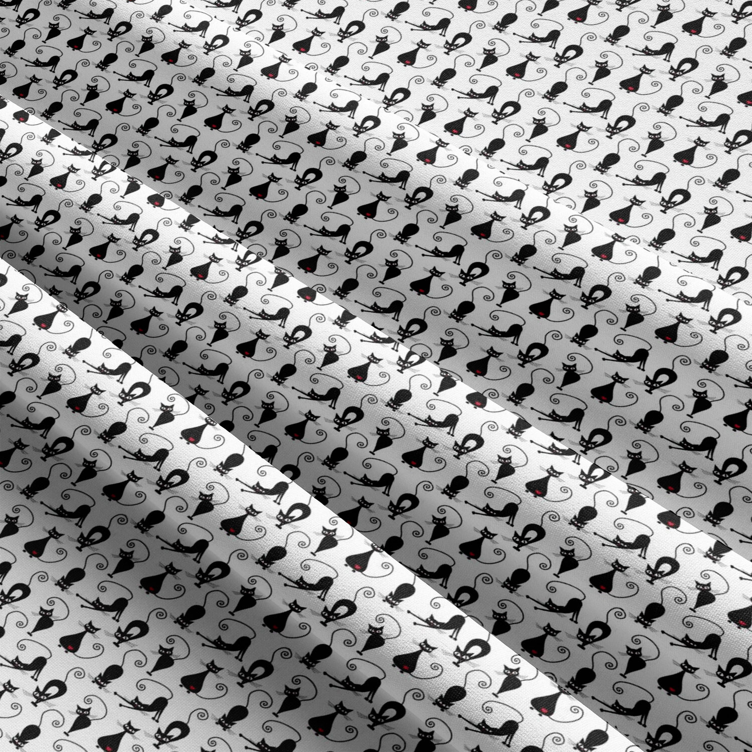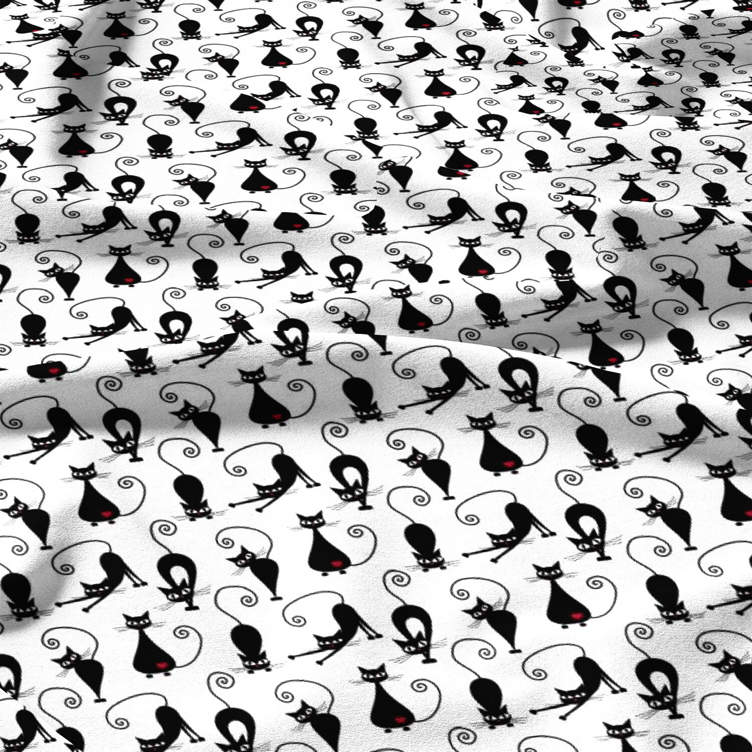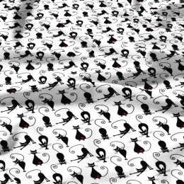 Bavlnená látka vzor mačka kleopatra na bielom podklade, metráž 160 cm
