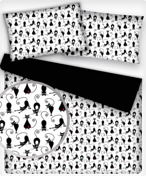 Popis  Bavlnená látka vzor mačka kleopatra na bielom podklade, metráž 160 cm