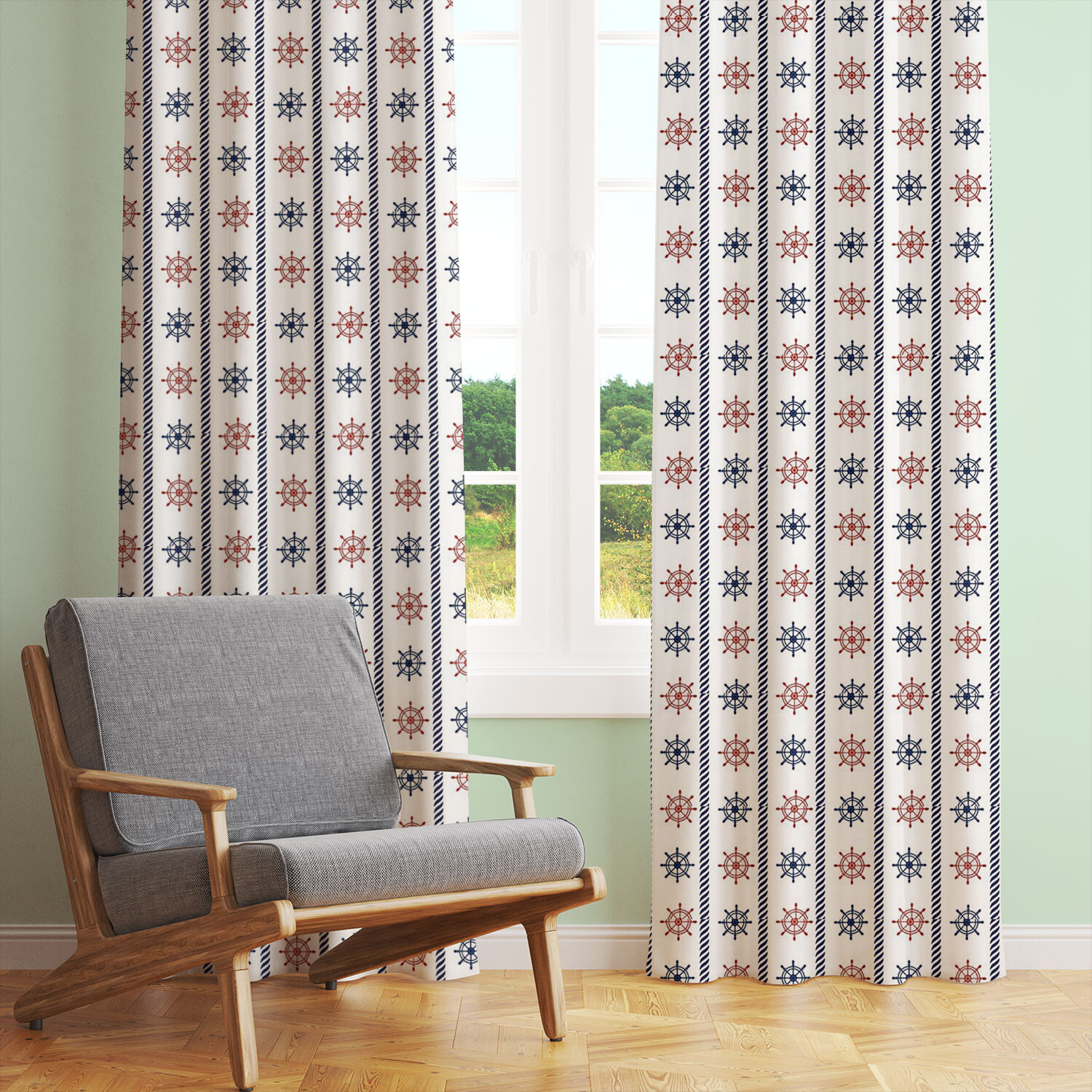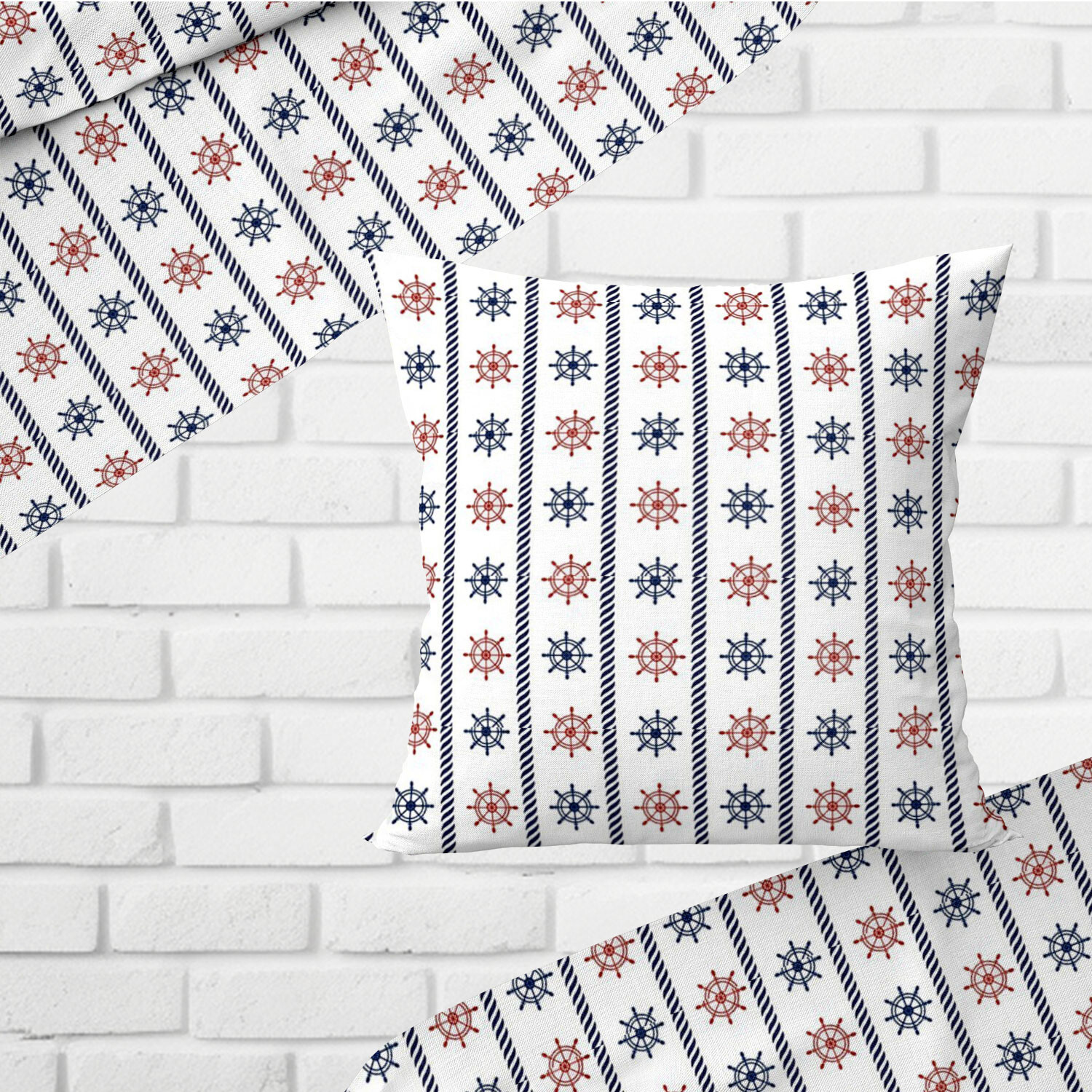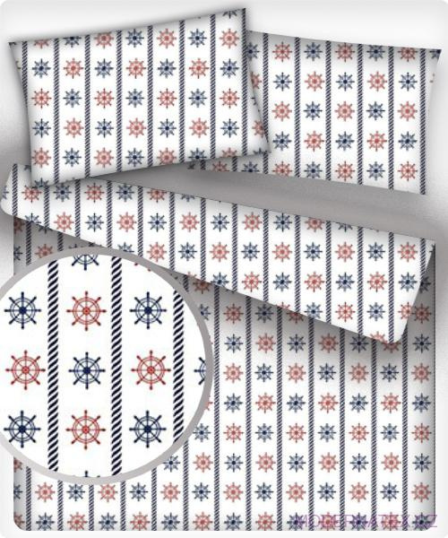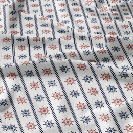 Bavlnená látka vzor modré a červené kormidlá, biely podklad, metráž 160 cm