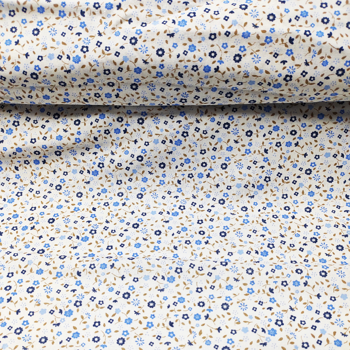 Bavlnená látka vzor modré-béžovékvetiny na bielom podklade, metráž 160 cm
