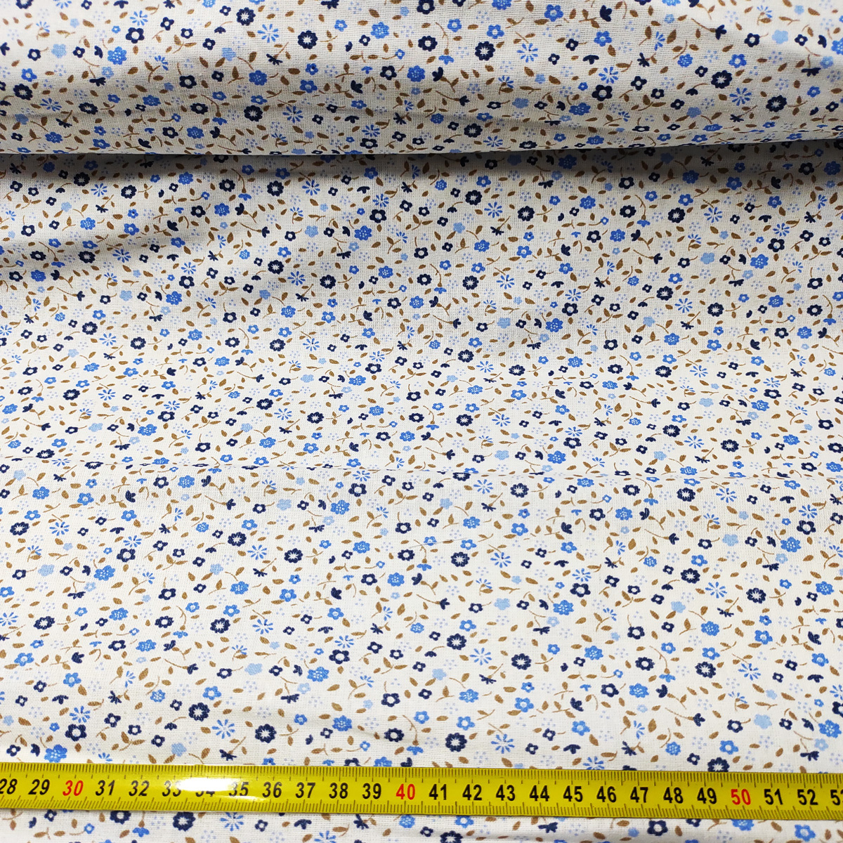 Popis Bavlnená látka vzor modré-béžovékvetiny na bielom podklade, metráž 160 cm
