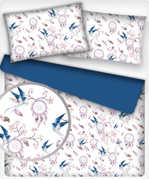 Popis Bavlnená látka vzor modrý lovec snov, biely podklad, metráž 160 cm