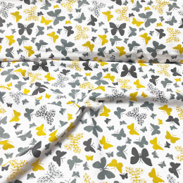 Popis Bavlnená látka vzor motýlikovia žlltá modern, metráž 160 cm