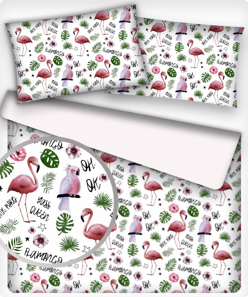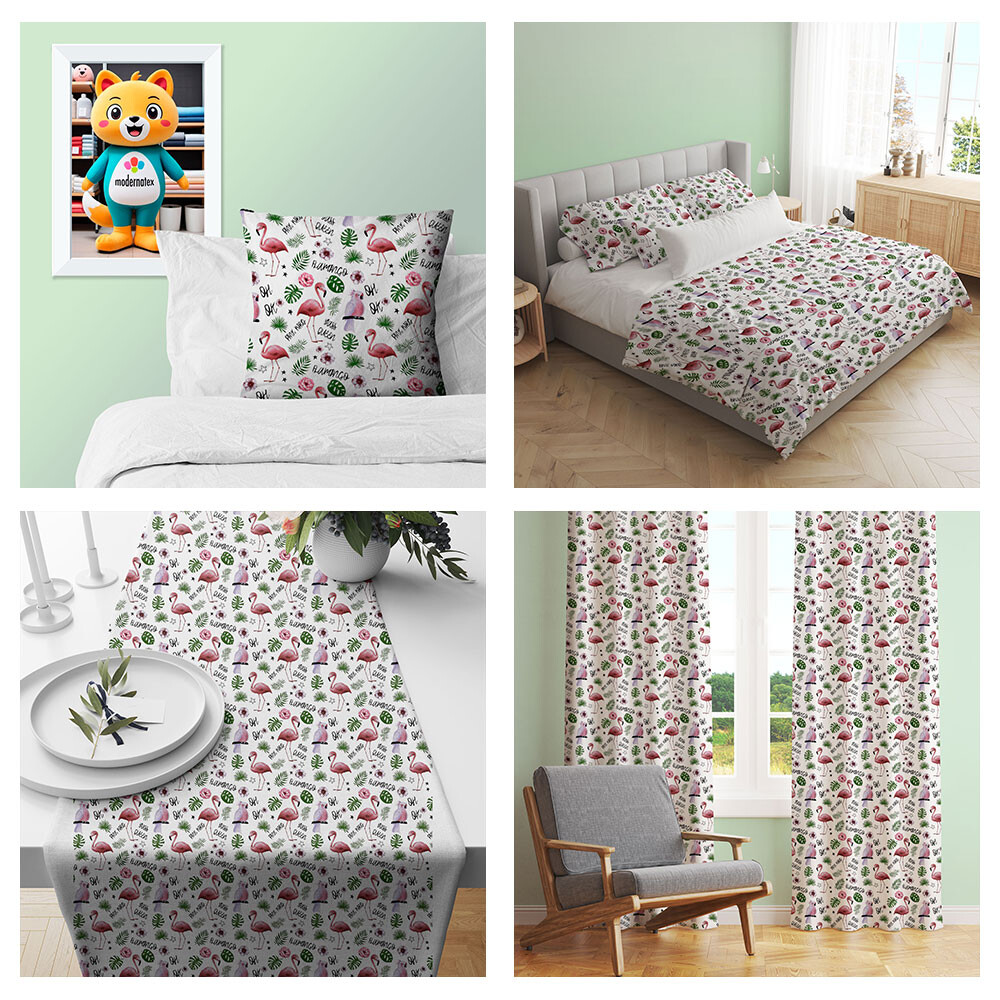Popis Bavlnená látka, vzor Plameniakov na bielom podklade, metráž 160 cm