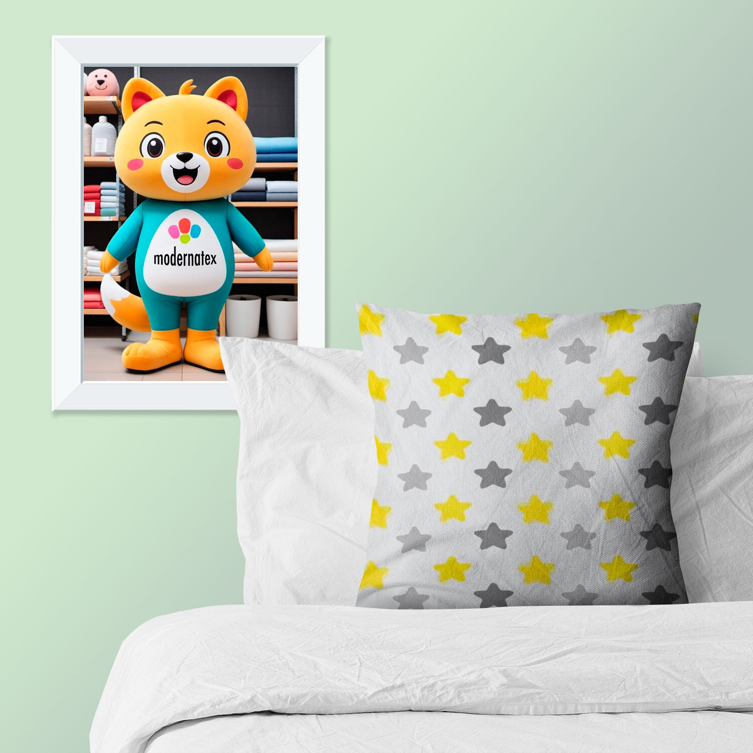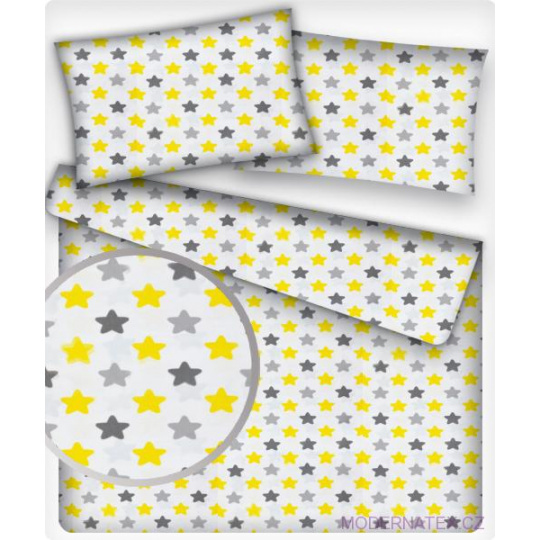 Popis Bavlnená látka, vzor šedé-žlté hviezdy na bielom podklade, metráž 160 cm