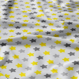 Bavlnená látka, vzor šedé-žlté hviezdy na bielom podklade, metráž 160 cm