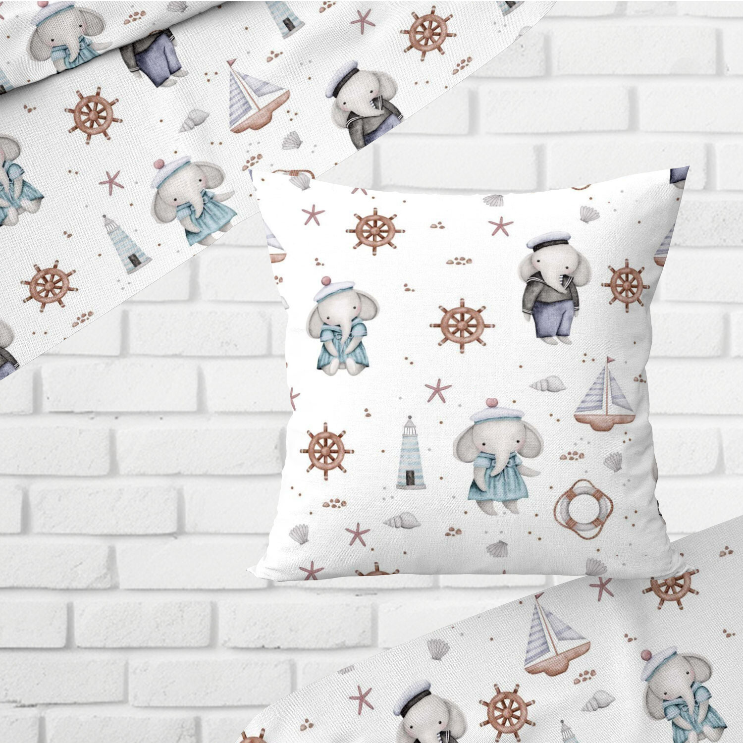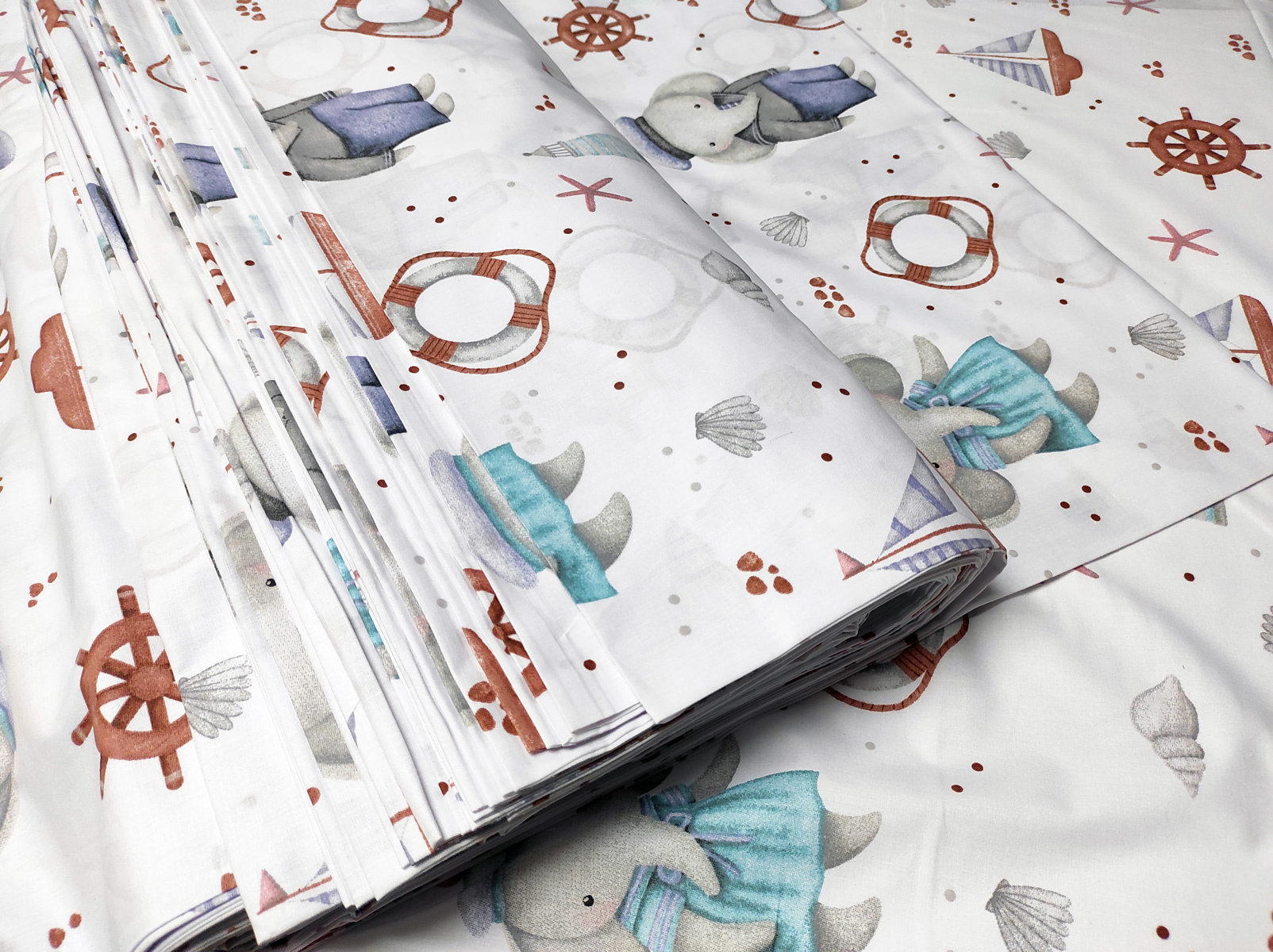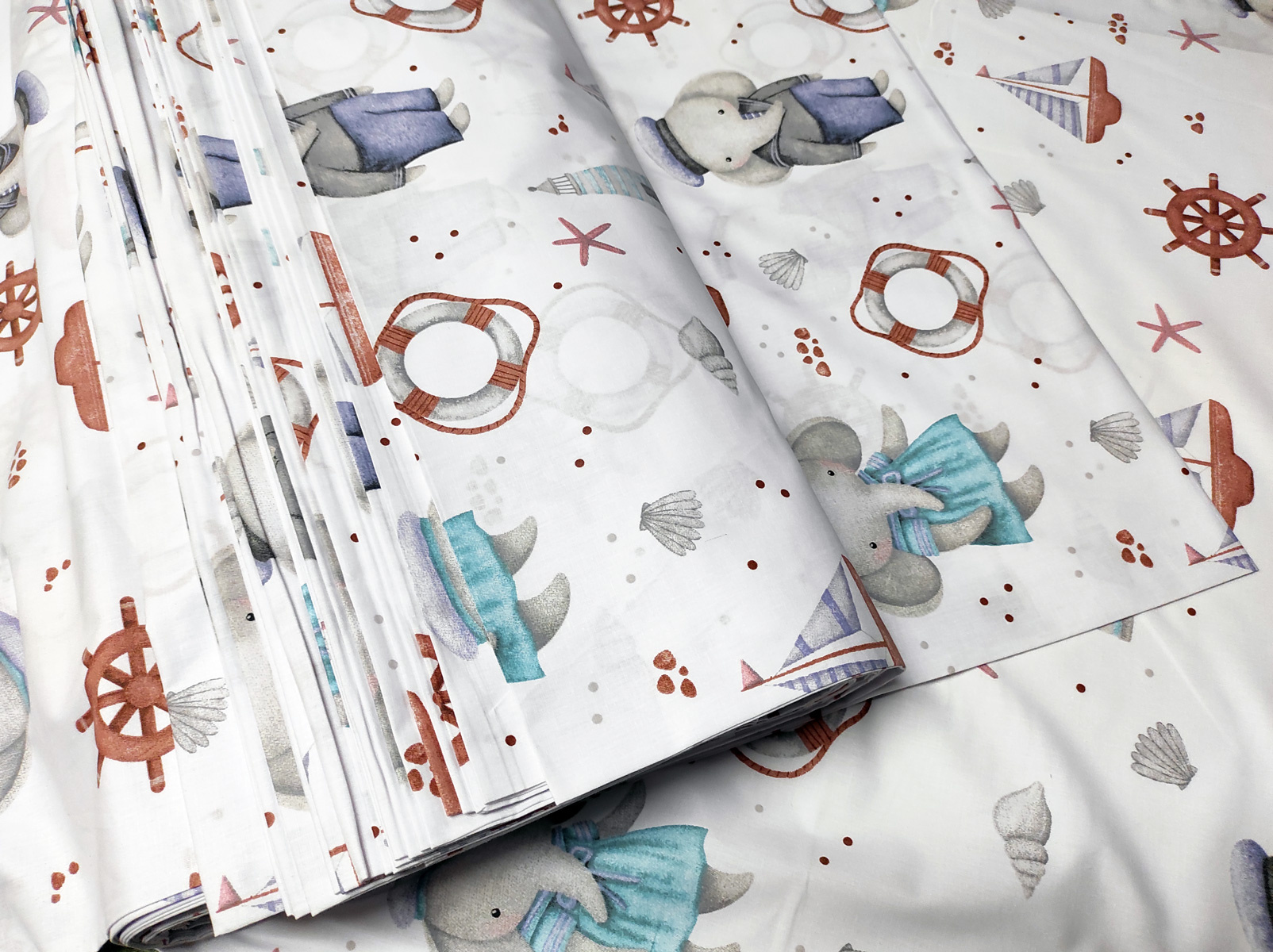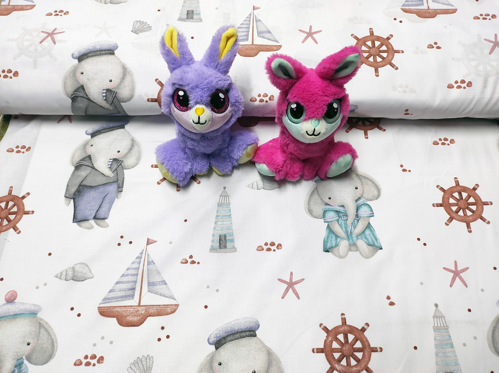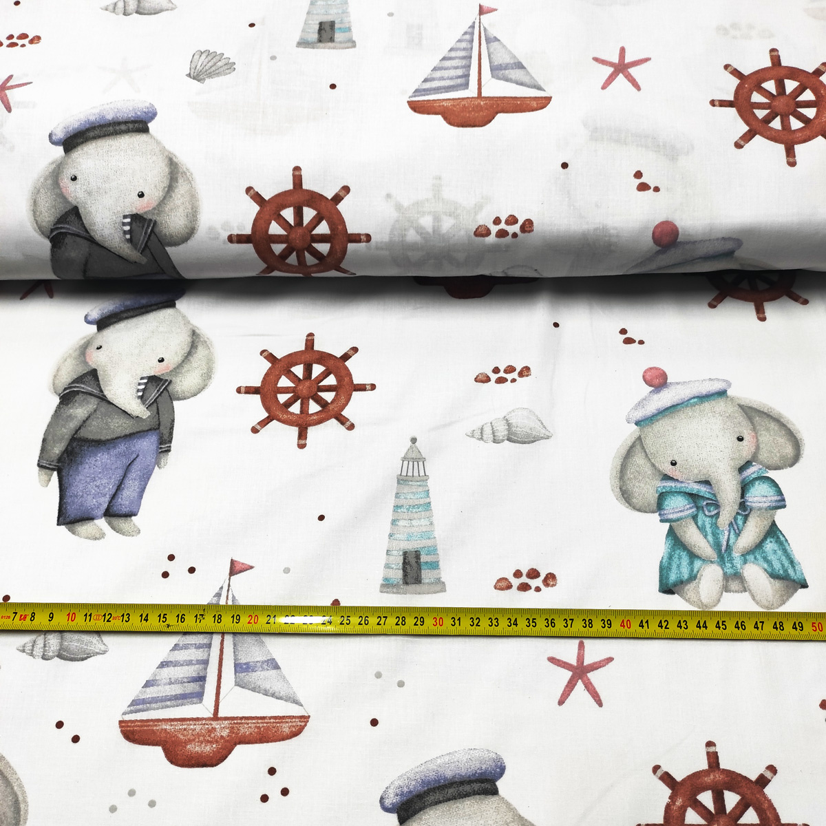 Popis Bavlnená látka vzor Slony a kormídlo na bielom 690