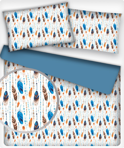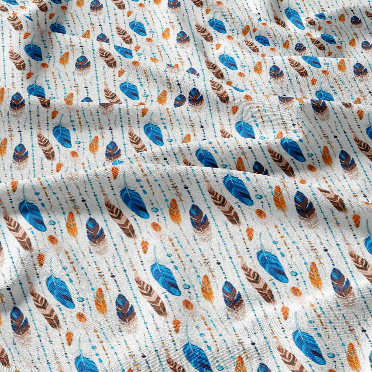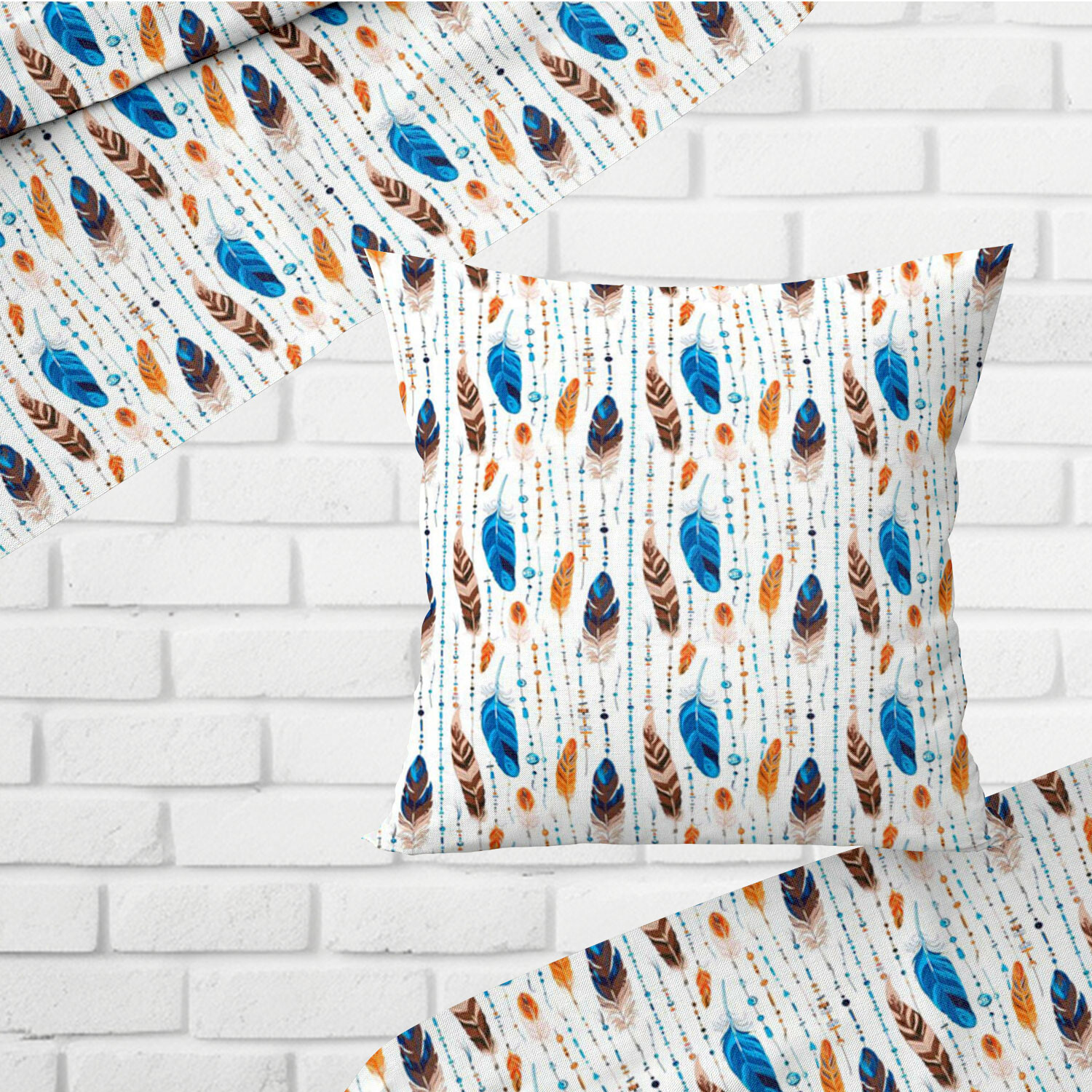 Popis Bavlnená látka vzor tyrkysovo-žlté pierka, metráž 160 cm