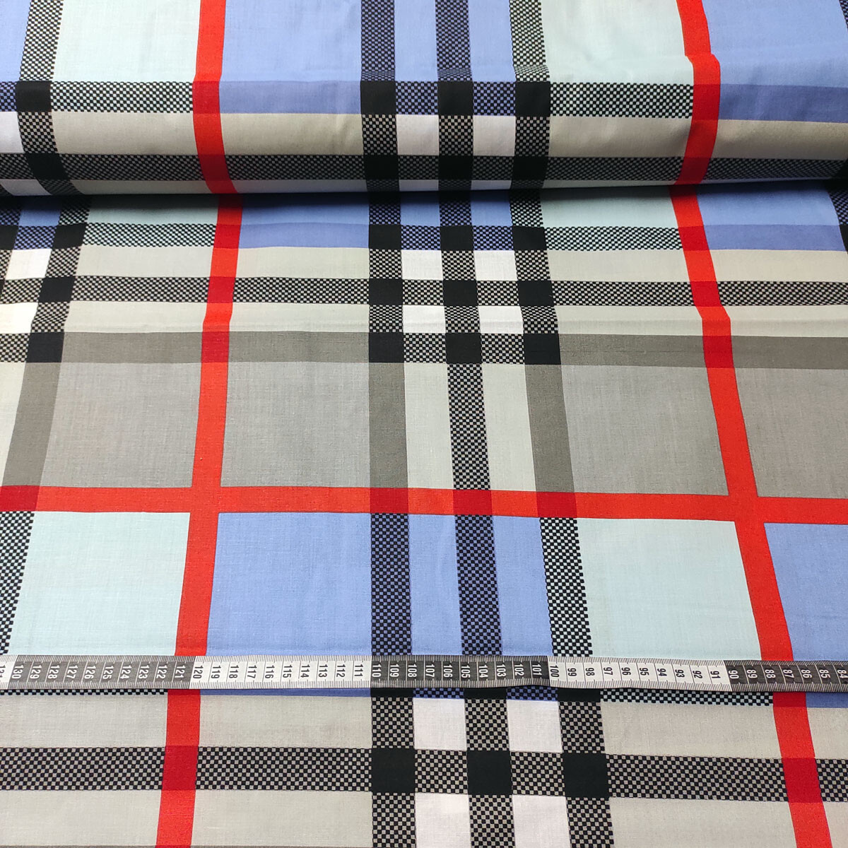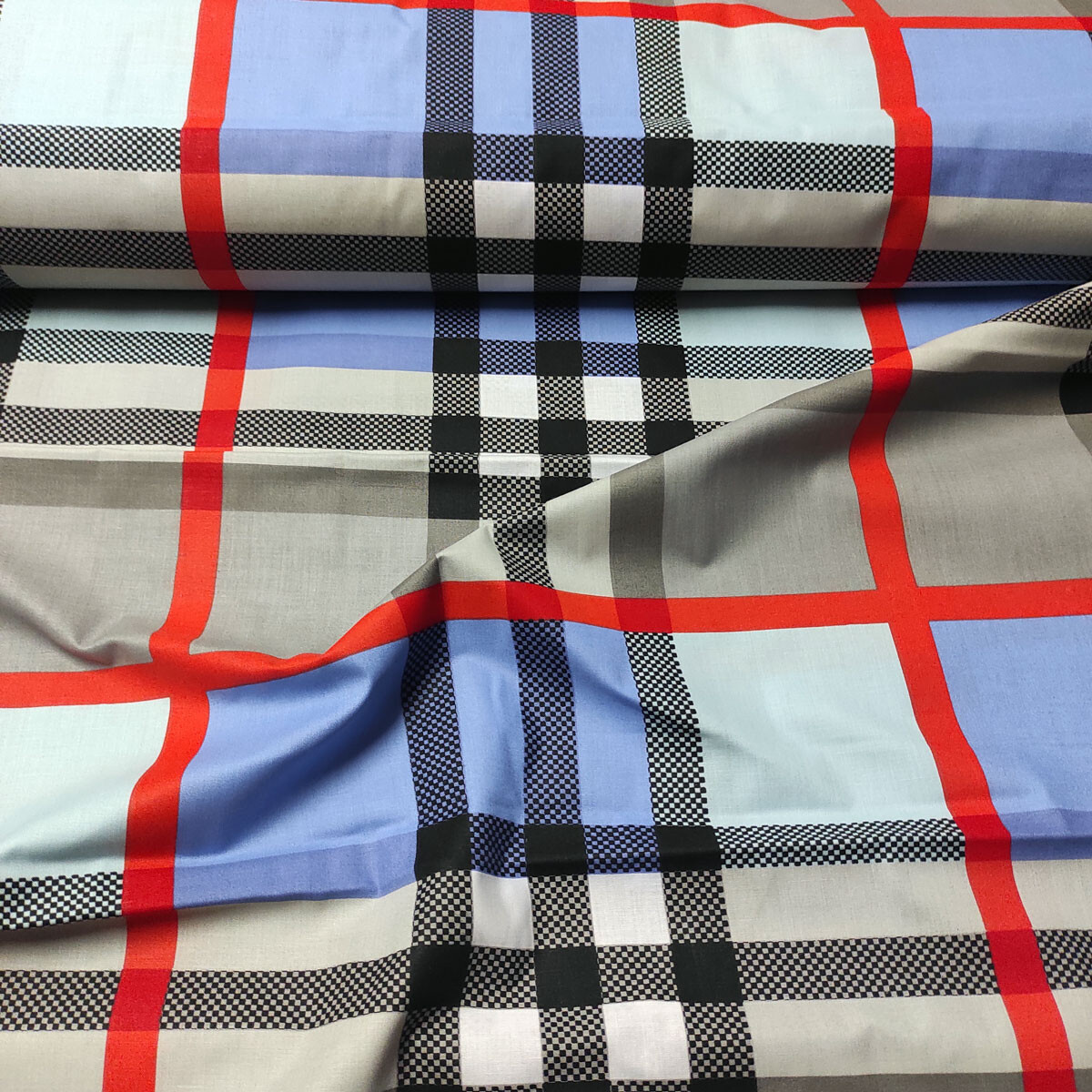 Popis Bavlnená látka, vzor veľká kocka , farba šedá, metráž 150 cm