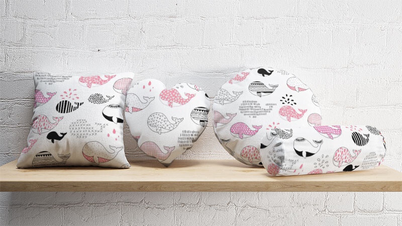Popis Bavlnená látka vzor veľryba, farba ružová, metráž 160 cm