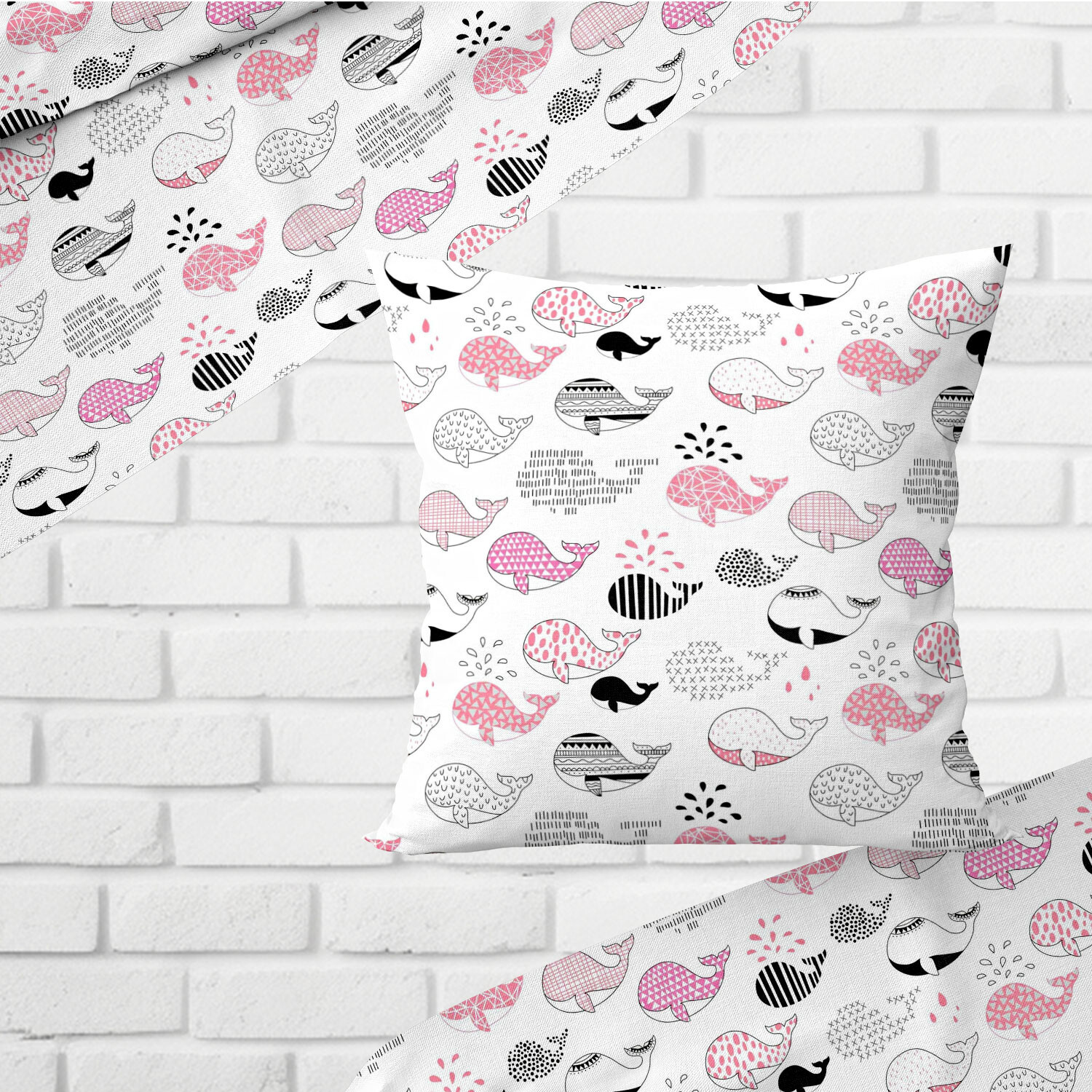 Popis Bavlnená látka vzor veľryba, farba ružová, metráž 160 cm